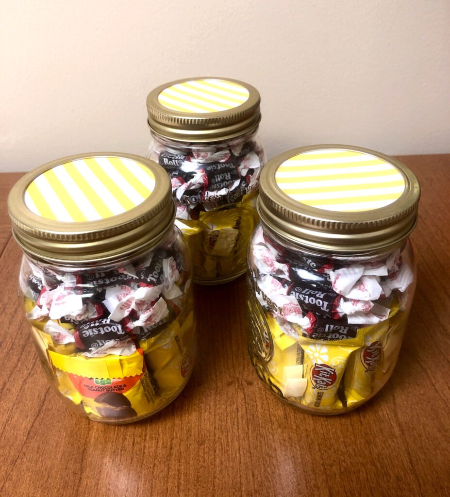 Send a jar full of sunshine to a man, woman, or child going through a dark place. Each one includes yellow slips of paper with motivational quotes or Bible verses and pieces of candy in yellow wrappers (Butterfingers, Dots, Laffy Taffy, Mr. Goodbar, Peanut M&M’s, Sour Patch Kids, Lemonheads, etc.)